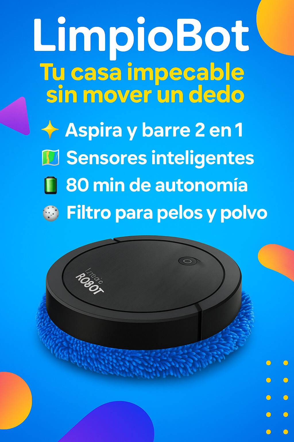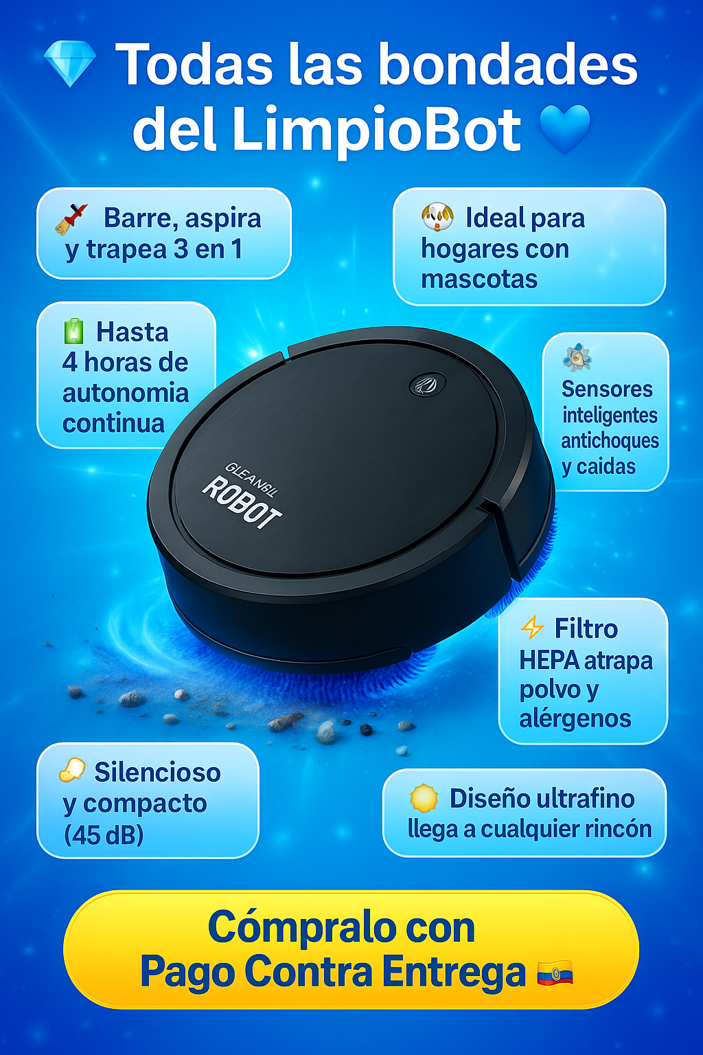 Gracias a su batería de 3.6V, el LIMPIOBOT ofrece hasta 4 horas de autonomía continua, superando a la mayoría de robots de su categoría. Esto permite limpiar múltiples habitaciones sin necesidad de recargar constantemente.