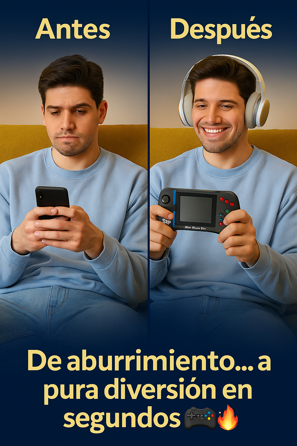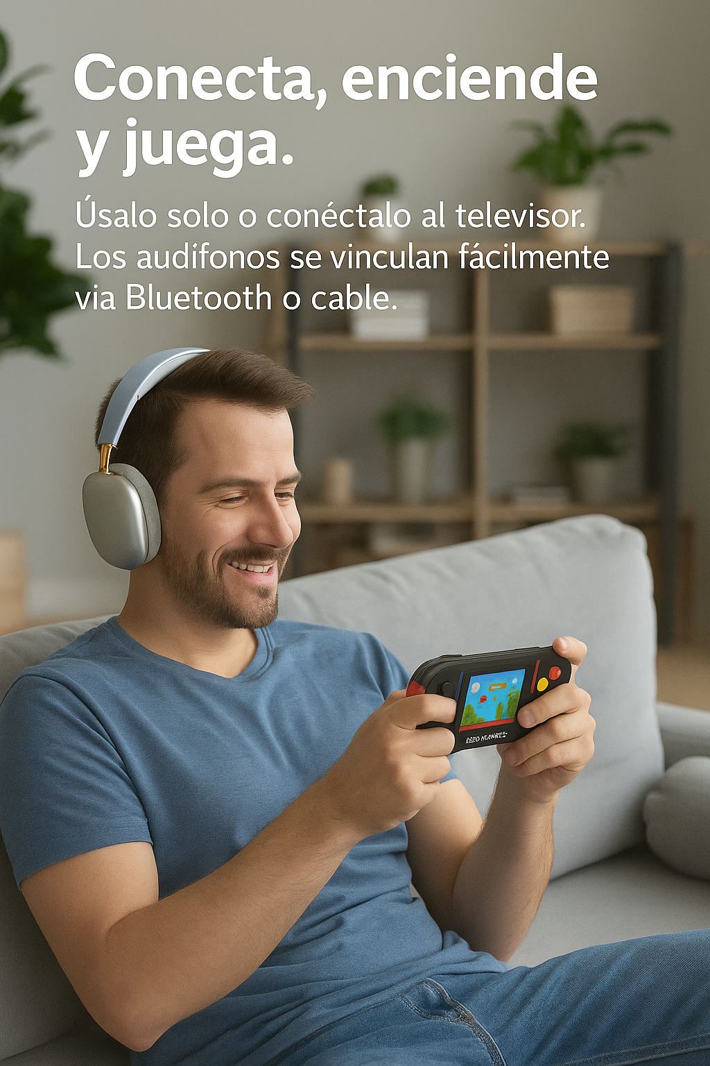 🎮Conecta, enciende y juega. Puedes usarlo solo o conectarlo al televisor. Los audífonos se vinculan fácilmente vía Bluetooth o cable.🎧
